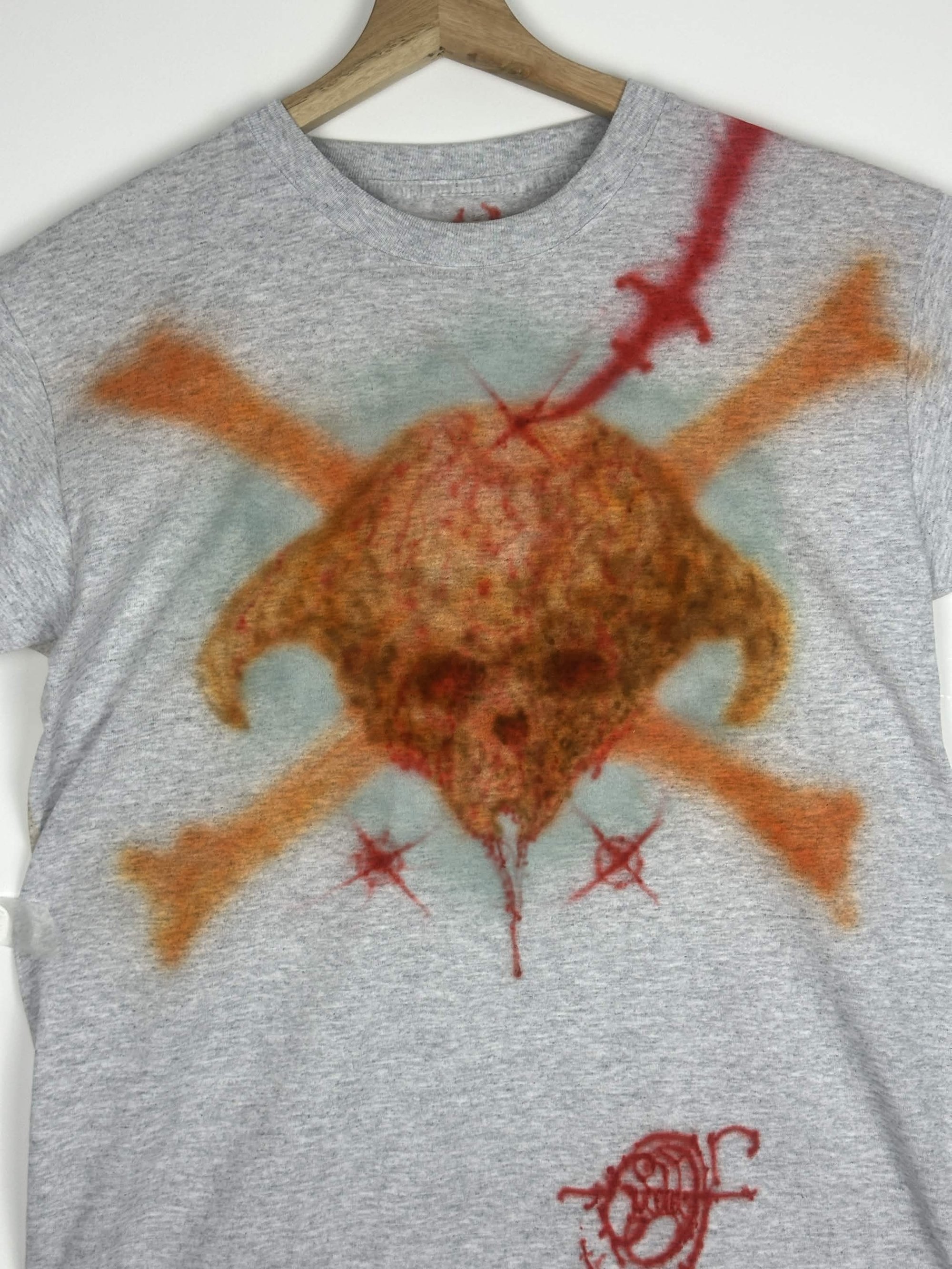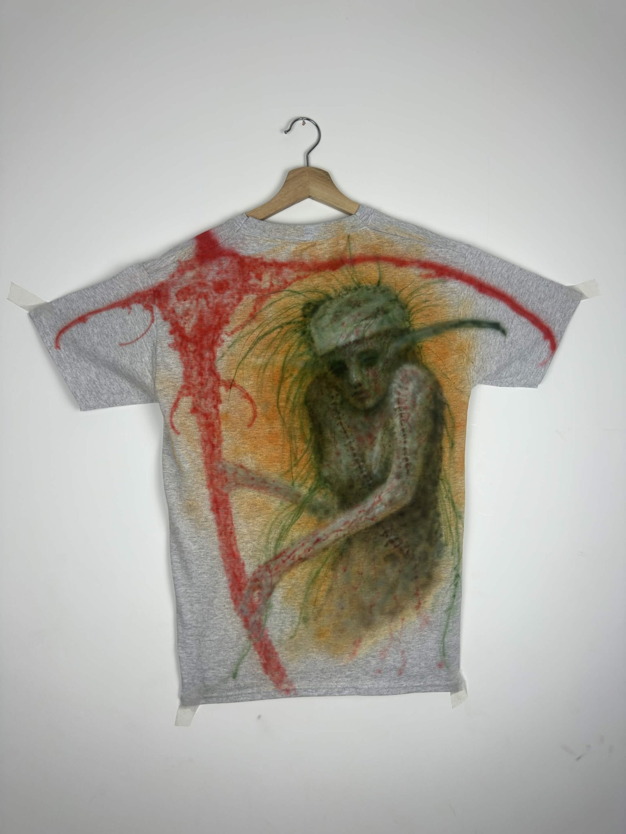 Cold wash. No tumble dryer. No iron direct on paint, only inside out.